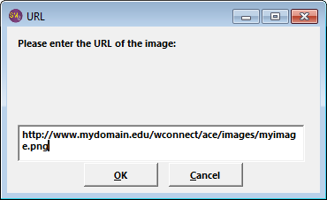 - Add an Image - IMPORTANT: the image must reside in your ACEweb Images folder (e.g. wconnect\ace\images) and you must enter the URL of the image.